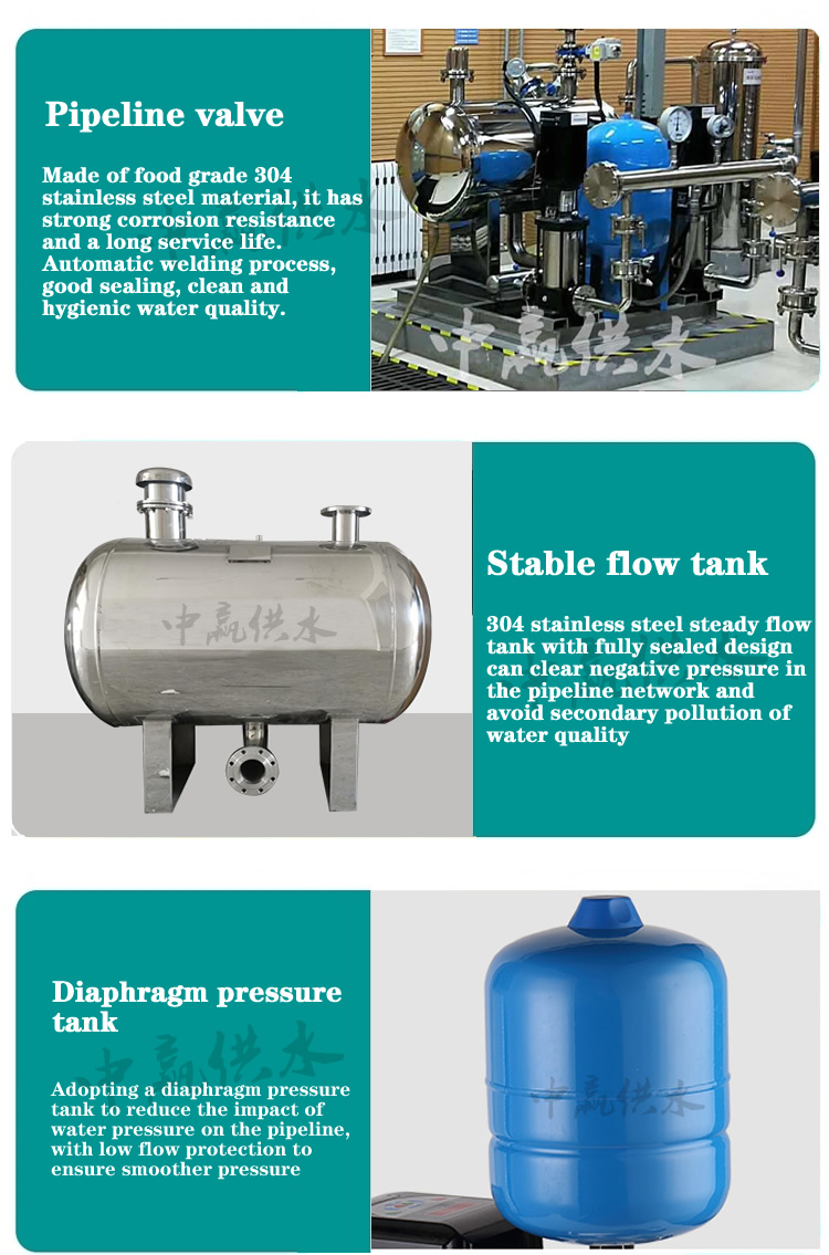 Non negative pressure water supply equipment is a kind of energy saving and environmental protection water supply equipment. It is an enclosed, directly connected with tap water pipe network, through the negative pressure eliminating mechanism and voltage conditioner intelligent, safe and clean water supply to the user, remove the tank, water tank, effectively prevent pollution two. Non negative pressure water supply equipment makes full use of the original pressure of tap water pipe network, based on the original pressure on pressure superposition, how much worse, how much make up, make the equipment more energy saving equipment, and uses the food grade 304 stainless steel material production, clean sanitation, is currently the leading two water supply method of the latest model.