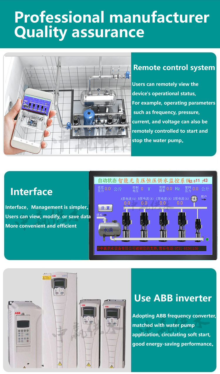 Stable water pressure through real-time sensor outlet pressure control, use frequency, to ensure the water pressure constant.